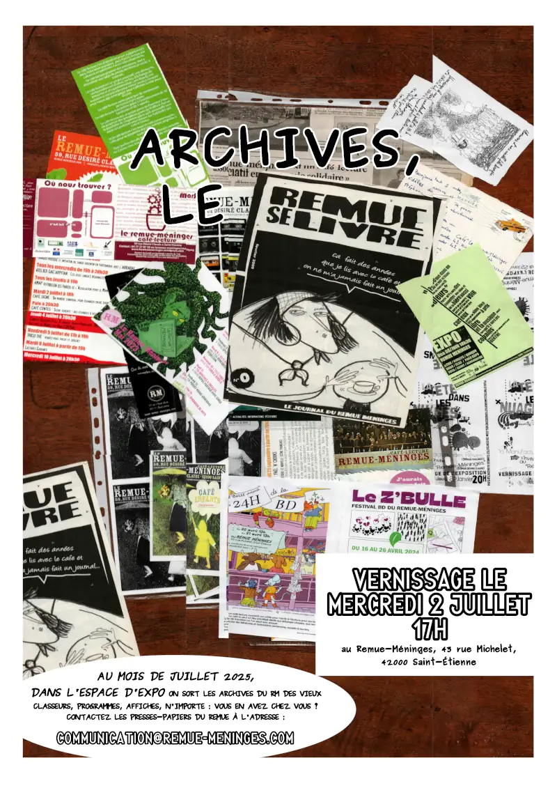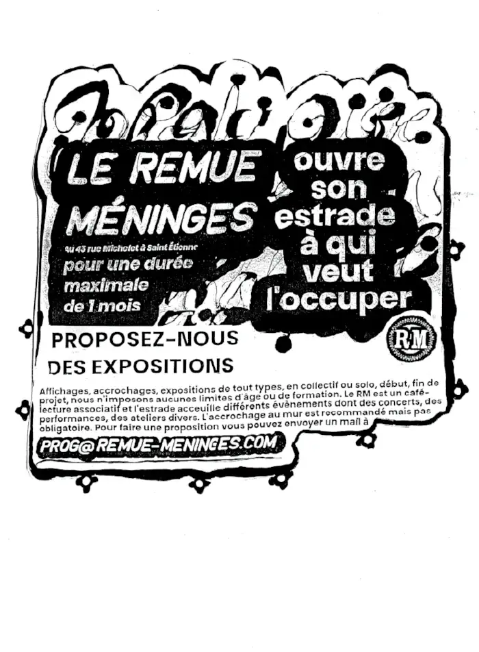 Le Remue-MΓ©ninges est un cafΓ©-lecture associatif fondΓ© en 2007 Γ Saint-Γtienne. Structure associative reposant sur une organisation collΓ©giale son fonctionnement, est basΓ© sur des commissions maintenues par des bΓ©nΓ©voles.